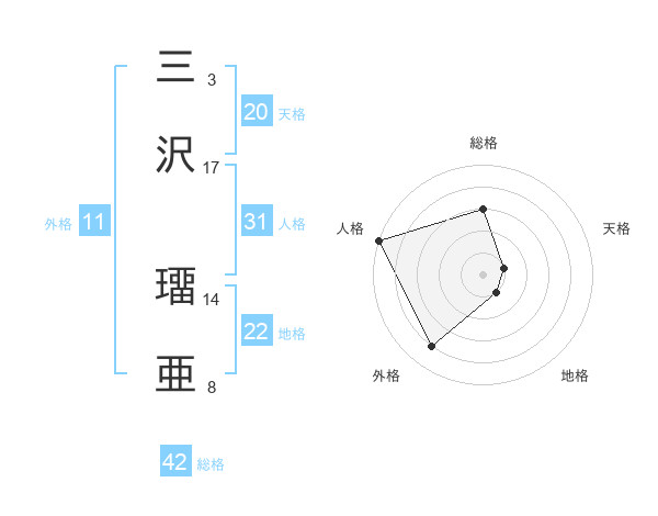 三沢 璢亜さんを姓名の画数から五運を鑑定