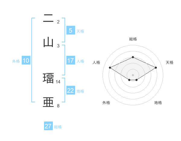 二山 璢亜さんの総格は27画の3点!