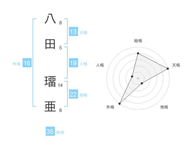 八田 璢亜さんの総格は35画の4点!
