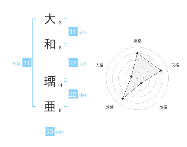 大和 璢亜さんを姓名の画数から五運を鑑定