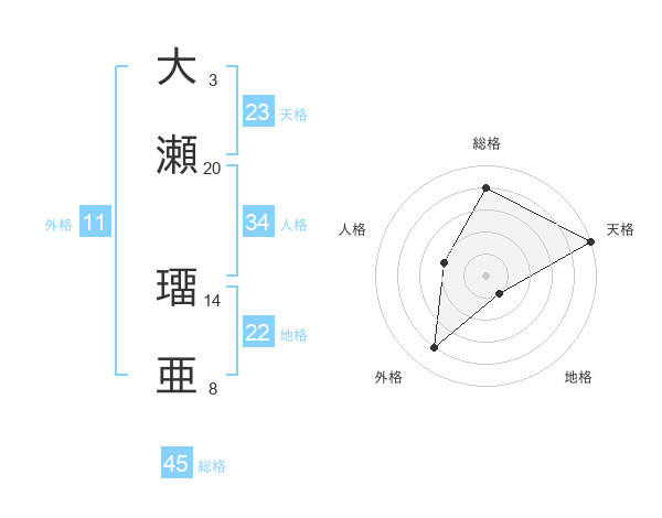 大瀬 璢亜さんを姓名の画数から五運を鑑定