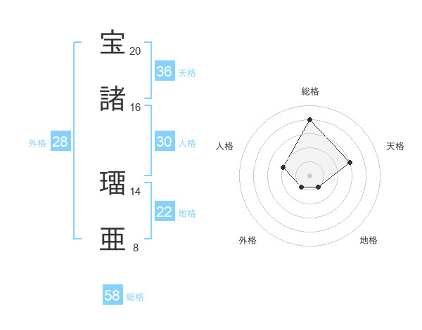 宝諸 璢亜さんの総格は58画の4点!