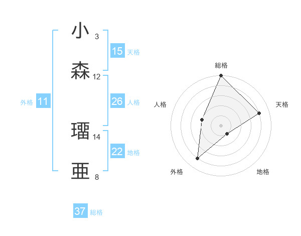 小森 璢亜さんの総格は37画の5点!