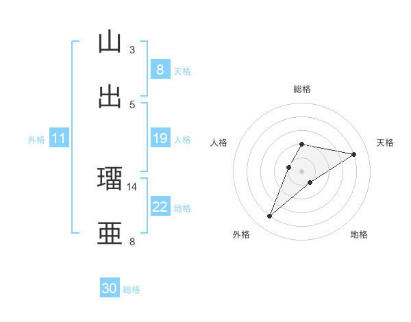 山出 璢亜さんを姓名の画数から五運を鑑定