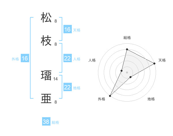松枝 璢亜さんの総格は38画の4点!