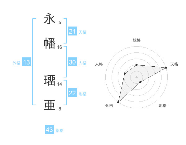 永幡 璢亜さんの天格は21画の5点!