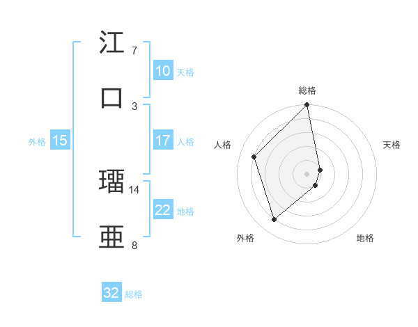 江口 璢亜さんの総格は32画の5点!