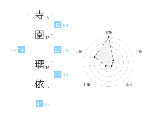 寺園 璢依さんの総格は41画の5点!