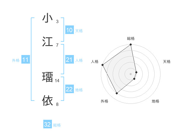 小江 璢依さんの総格は32画の5点!