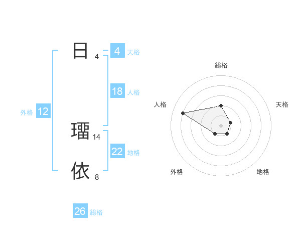 日 璢依さんの総格は26画の2点!
