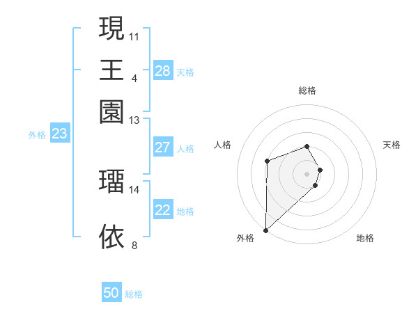 現王園 璢依さんの総格は50画の2点!