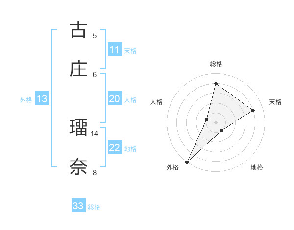 古庄 璢奈さんの総格は33画の4点!