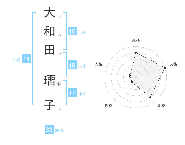 大和田 璢子さんを姓名の画数から五運を鑑定