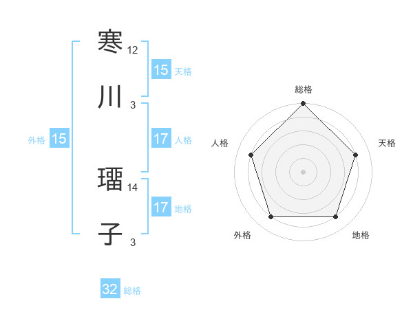 寒川 璢子さんの天格は15画の4点!