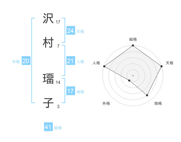沢村 璢子さんを姓名の画数から五運を鑑定
