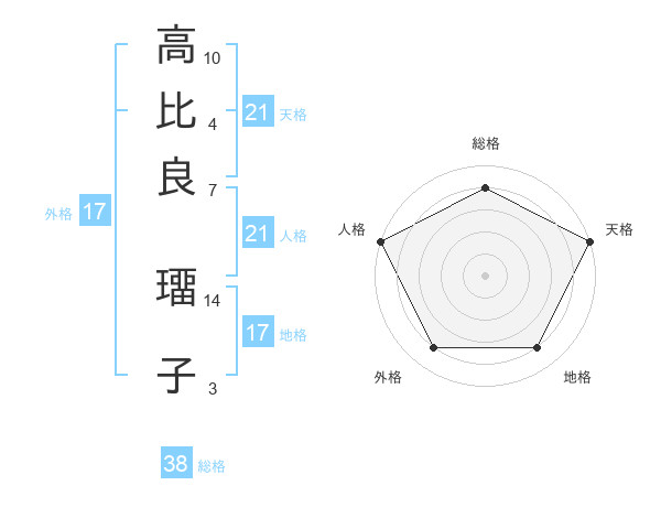 高比良 璢子さんの総格は38画の4点!