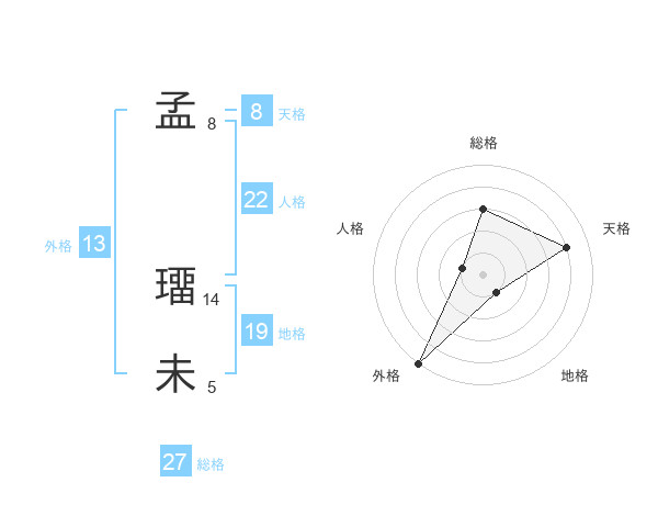 孟 璢未さんの総格は27画の3点