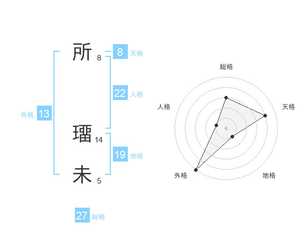 所 璢未さんの外格は13画の5点!