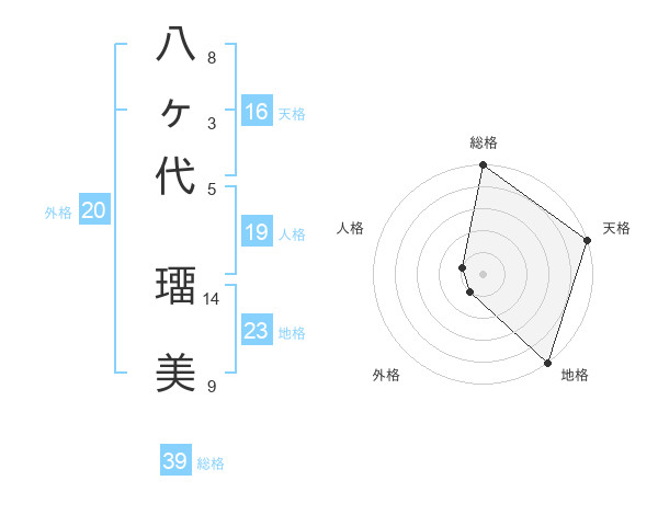 八ヶ代 璢美さんを姓名の画数から五運を鑑定