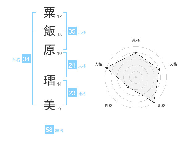 粟飯原 璢美さんの総格は58画の4点!
