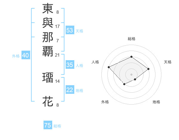 東與那覇 璢花さんを姓名の画数から五運を鑑定