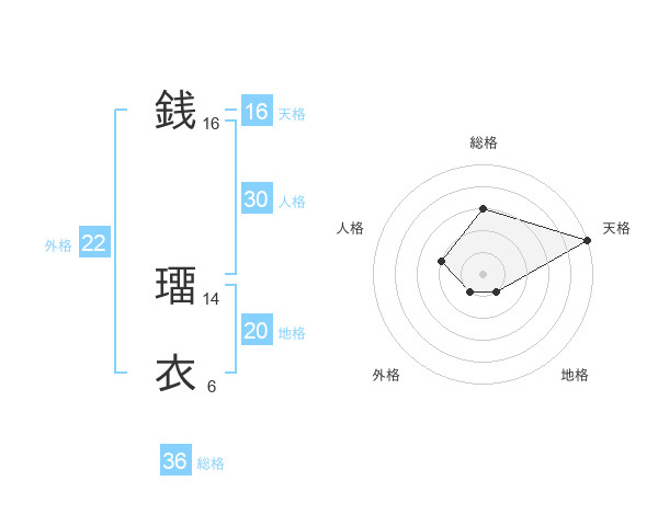 銭 璢衣さんの天格は16画の5点!