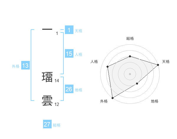 一 璢雲さんの外格は13画の5点!