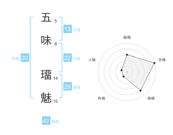 五味 璢魅さんの天格は13画の5点!