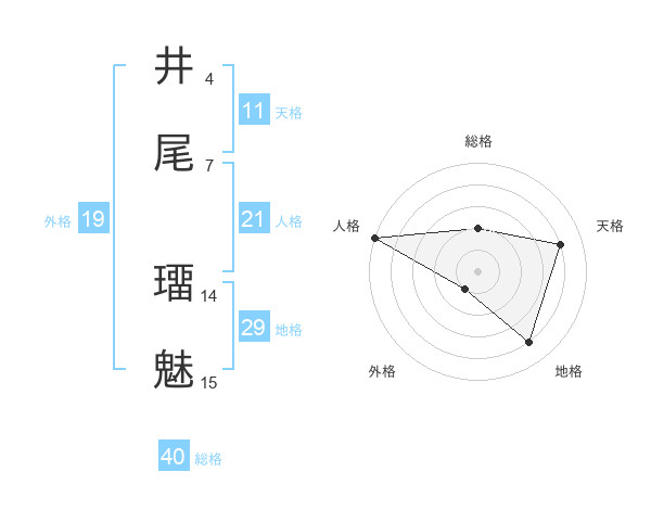 井尾 璢魅さんの地格は29画の4点!
