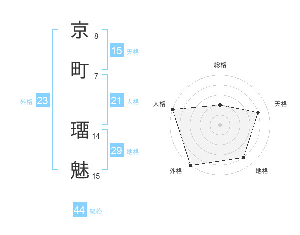 京町 璢魅さんの地格は29画の4点!