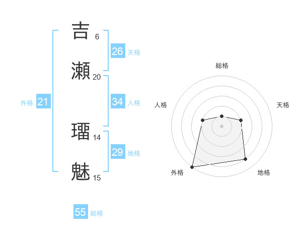 吉瀬 璢魅さんの総格は55画の1点!