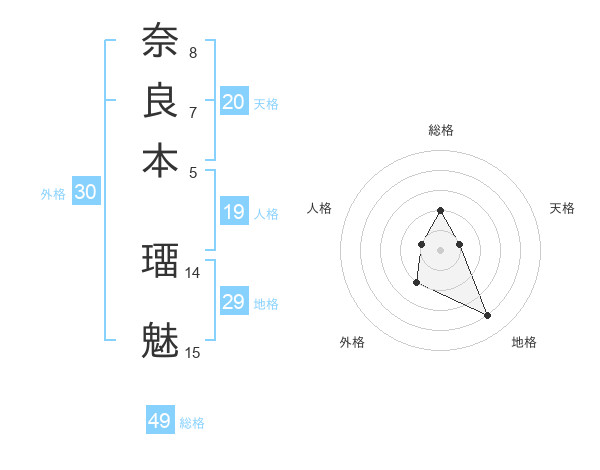 奈良本 璢魅さんの総格は49画の2点!