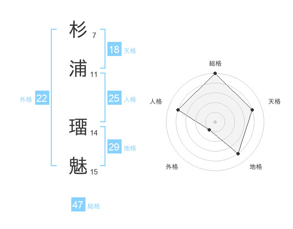 杉浦 璢魅さんを姓名の画数から五運を鑑定