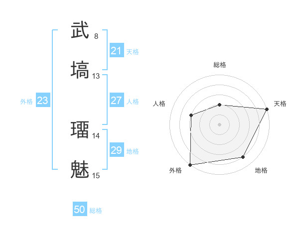 武塙 璢魅さんを姓名の画数から五運を鑑定