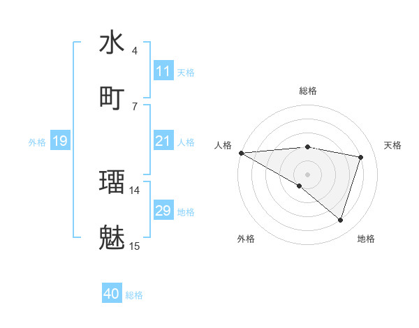 水町 璢魅さんの地格は29画の4点!