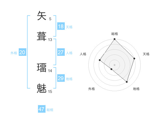 矢葺 璢魅さんの地格は29画の4点!