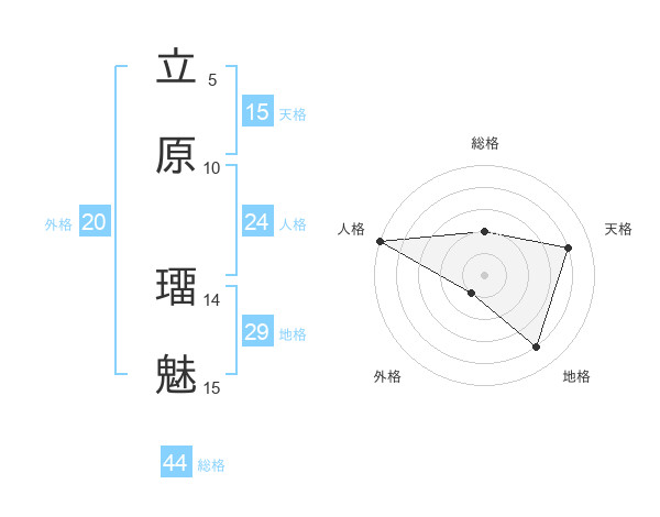 立原 璢魅さんの総格は44画の2点!