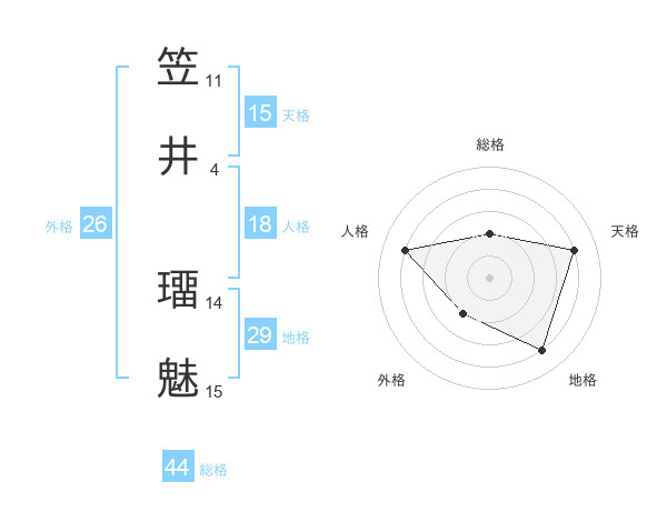 笠井 璢魅さんの総格は44画の2点!