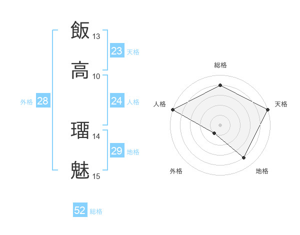 飯高 璢魅さんの総格は52画の4点!