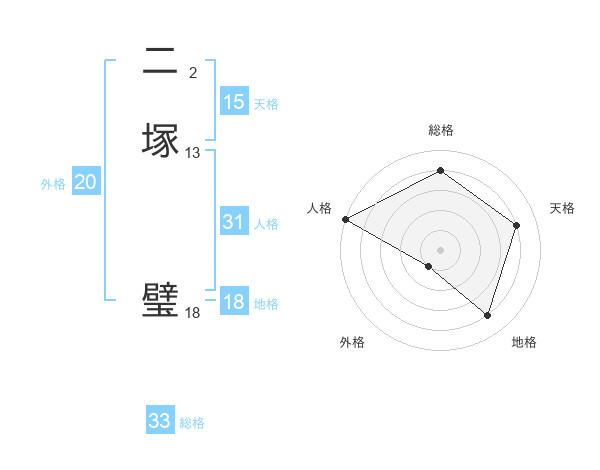 二塚 璧さんの外格は20画の1点!