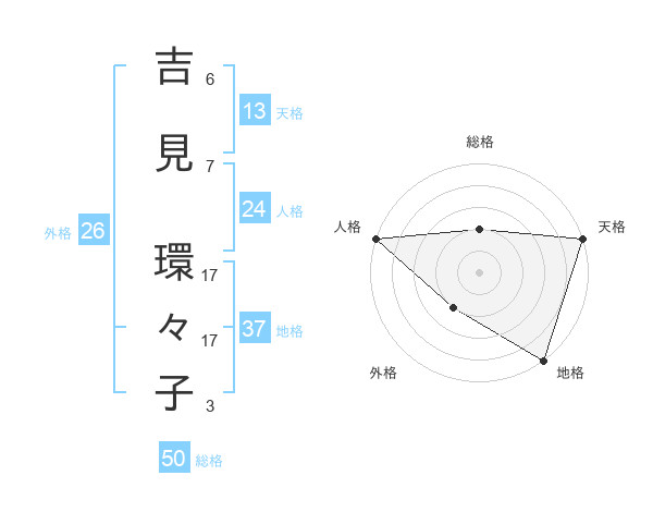 吉見 環々子さんを姓名の画数から五運を鑑定
