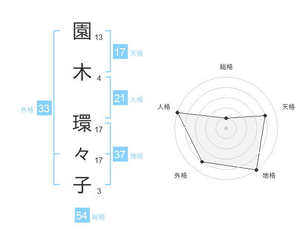 園木 環々子さんの地格は37画の5点!