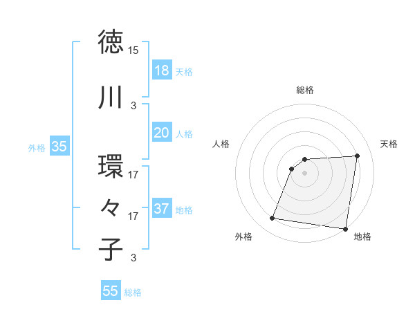 徳川 環々子さんを姓名の画数から五運を鑑定