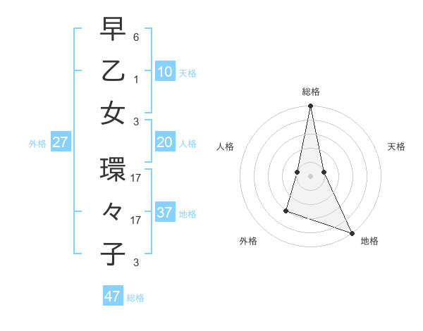 早乙女 環々子さんを姓名の画数から五運を鑑定