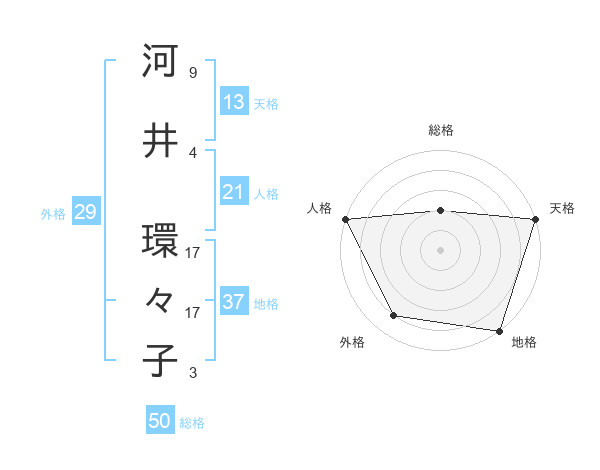 河井 環々子さんの総格は50画の2点!