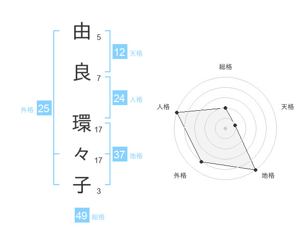 由良 環々子さんの地格は37画の5点