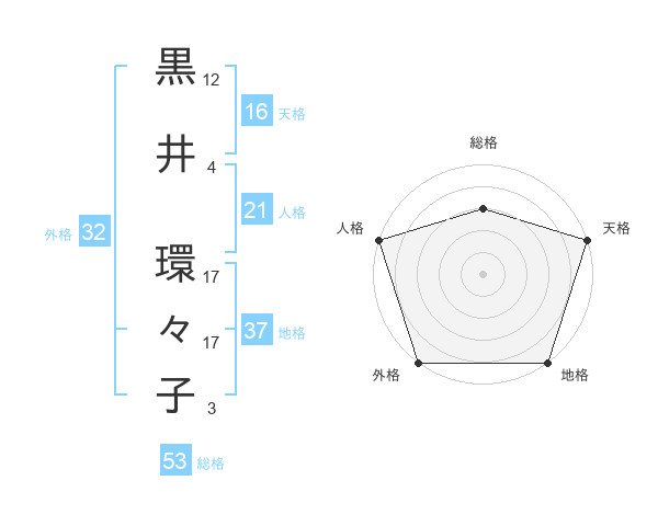 黒井 環々子さんの外格は32画の5点!