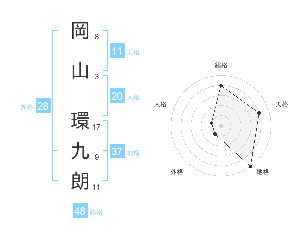 岡山 環九朗さんの総格は48画の4点!