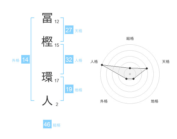 冨樫 環人さんを姓名の画数から五運を鑑定