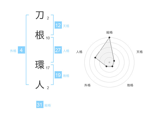 刀根 環人さんの総格は31画の5点!